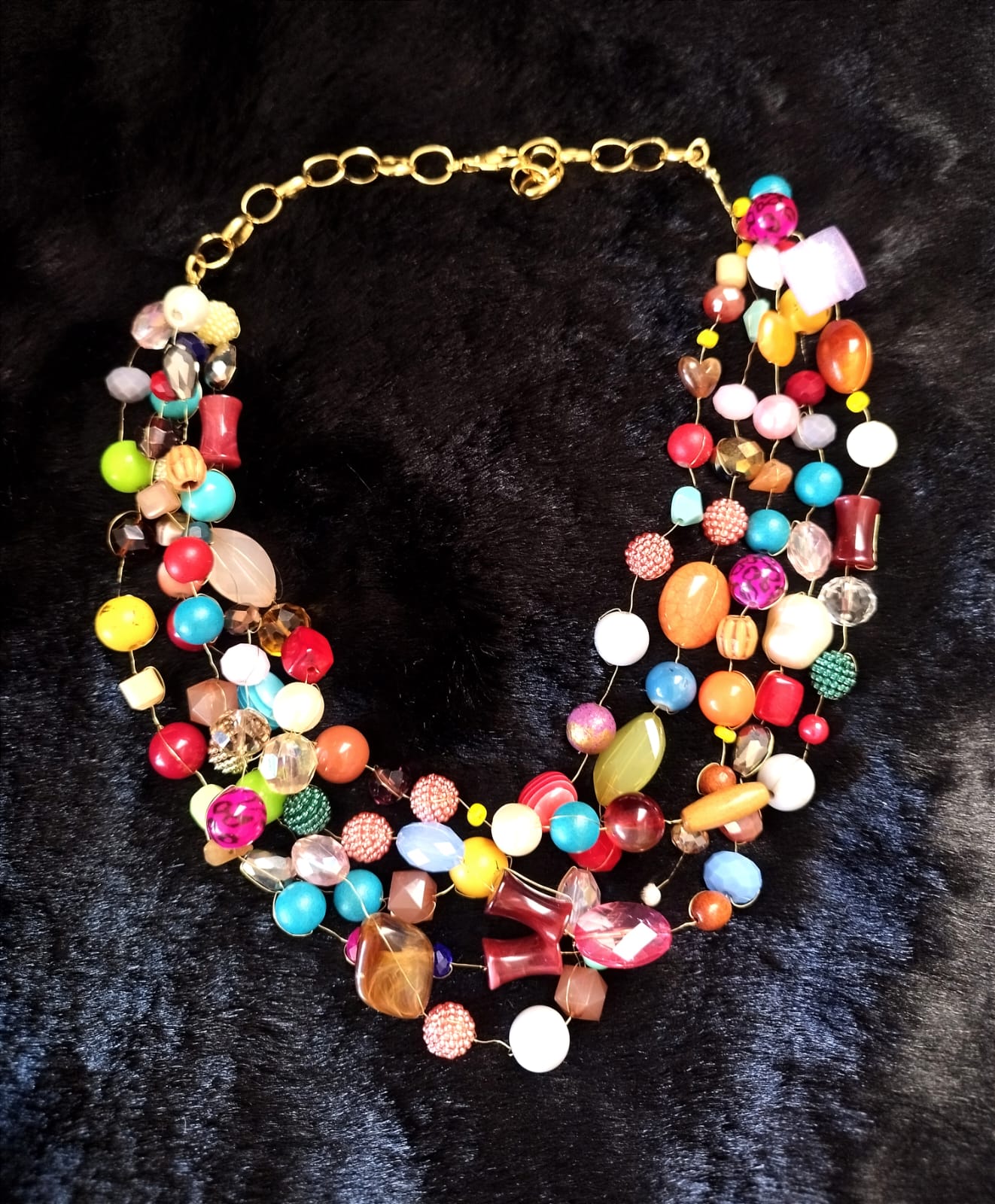 Colar curto 5 em 1, multicolorido com detalhes em dourado